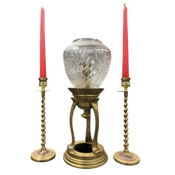 LOT 477 - Heavy Brass Cut Glass Candle Holder 2 Twist Candlesticks