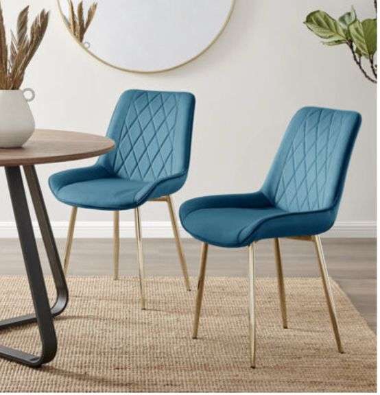 The Twillery Co. Dining Chairs- Simsbury Palmermo Velvet Modern Upholstered Quilt Stitched Tapered Metal Leg Luxury Dining Chairs- Gold Legs- Navy Upholstery