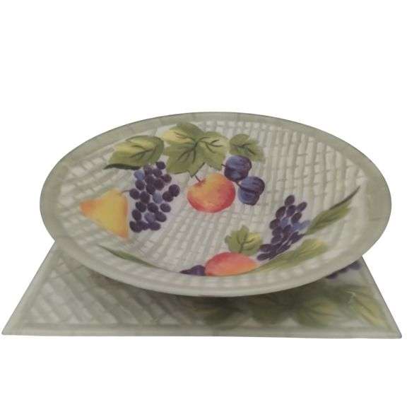 LOT 35 - Art Glass Bowl Tray Hand Painted Fruit Basket