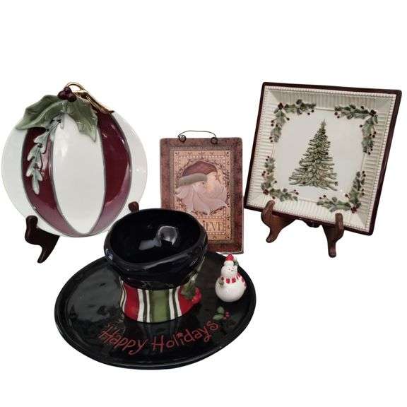 LOT 122 - Grasslands Road Christmas Plates Snowman Hat Party Decor