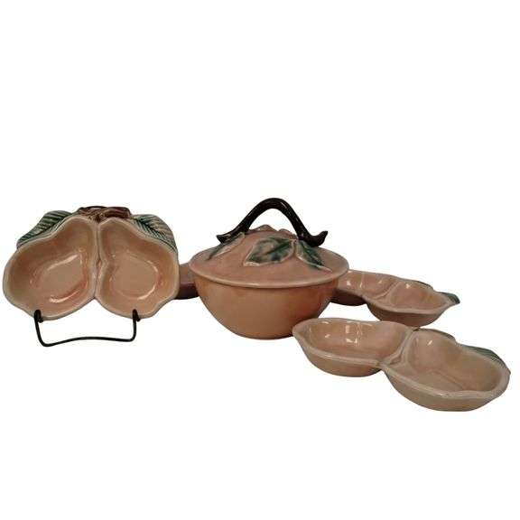 LOT 123 - Vintage Mid Century Belmar of Cali Peach Dish Snack Set Ceramic