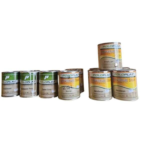 LOT 390 - (11ea) 1qt Poloplaz Stain- Misc. Colors: Fruitwood, Alabaster Pearl, Cadet Gray. Neutral, Jacobean