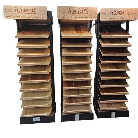 LOT 431 - (3ea) Sheoga Wood Sample Display w/ Wood Samples- Prefinish, Solid, Engineered