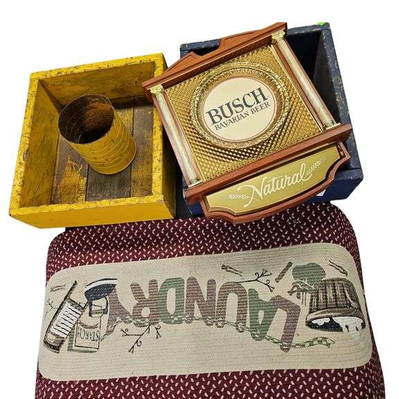 LOT 257 - Vintage Washer Toss Game Busch Beer Sign Laundry Rug