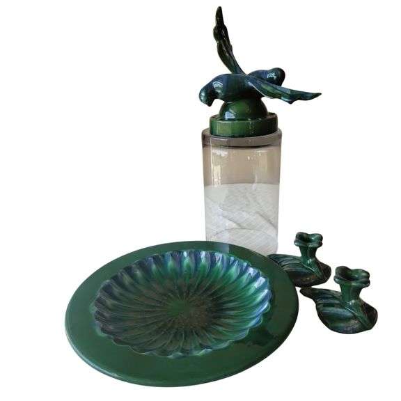 LOT 6 - Vintage Royal Haeger Ceramic Bird Flower Frog Bowl Leaf Candlesticks