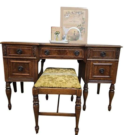 LOT 29 - Antique Wooden Vanity Triangle Furniture Stool Marriage Certificate +