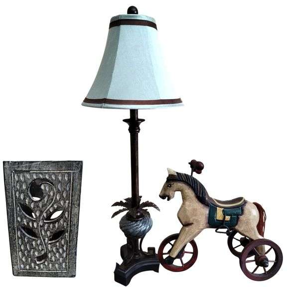 LOT 59 - Ornate Table Lamp Pier One Candle Holder Wooden Horse