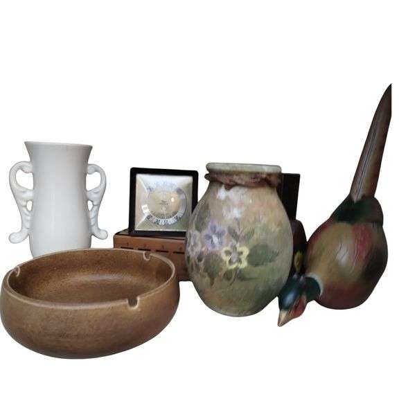 LOT 68 - LOT Vintage Wooden Pheasant Red Wing USA Vase Ashtray