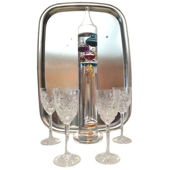 LOT 79 - Galileo Thermometer & Vintage Crystal Cordial Glasses