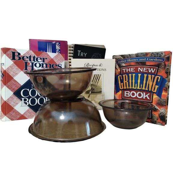 LOT 82 - LOT Vintage Pyrex Corning Ware Mixing Bowls Cookbooks