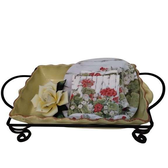 LOT 84 - Park Designs Porcelain 9x13 Dish Keller Charles Floral Plate Napkins