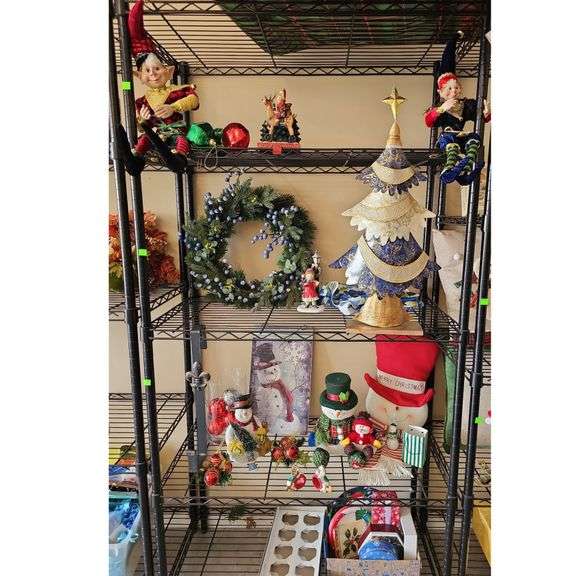 LOT 97 - Christmas Decor Elves Red Blue Metal Tree Snowman SHELVES NOT INCLUDED!!