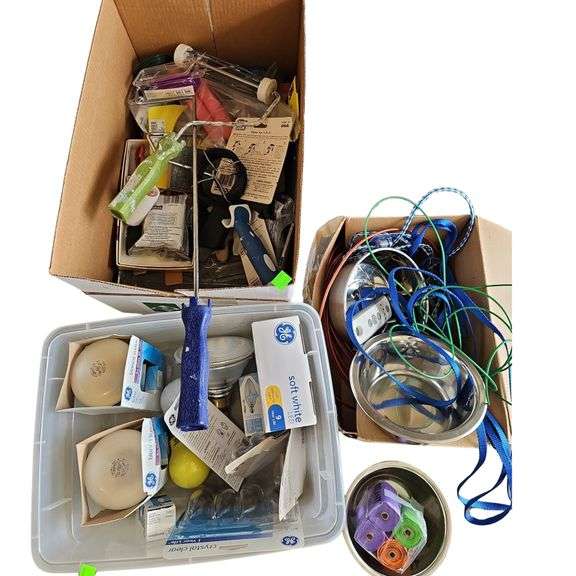 LOT 121 - LOT Lightbulbs Painting Supplies Dog Bowl Leash