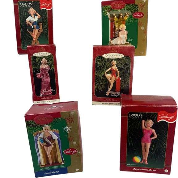 LOT 34 - Marilyn Monroe 6 Hallmark Carlton Christmas Ornaments Classic Hollywood