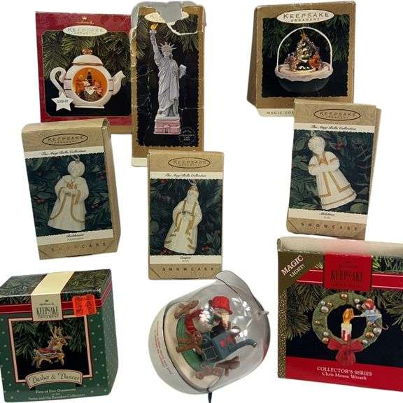 LOT 39 - 9 Hallmark Ornaments Motion Statue of Liberty Lights Magi & More