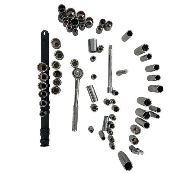 LOT 192 - Tools 3/8" Sockets SAE Metric Deep Ratchet Handle Adapters