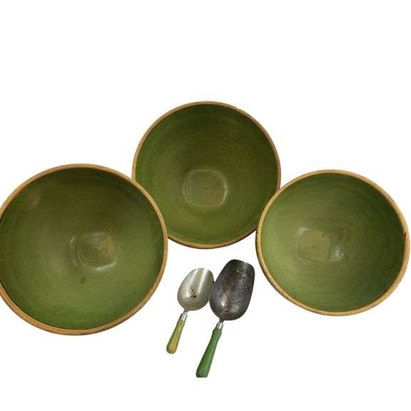 LOT 49 - Antique McCoy Windowpane Mixing Bowls Green Glaze Yellow Ware c1920s
