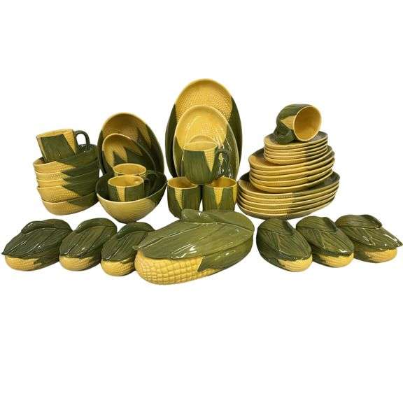 LOT 59 - Vintage Shawnee Corn King Plates Mugs Covered Dishes Bowls Medium Green