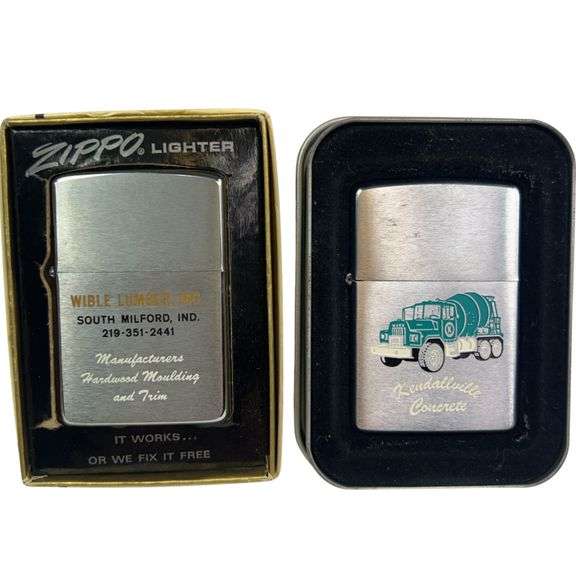 LOT 93 - ZIPPO Lighter Indiana Kendallville Concrete Wible Lumber Advertising Original Boxes