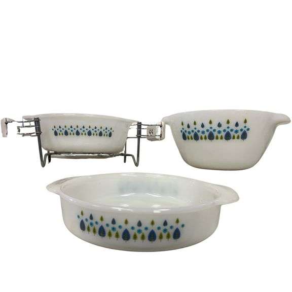 LOT 147 - Mid Century Pyrex Bowl Casserole Swiss Alpine Mod Colors BoHo Decor Blue Green