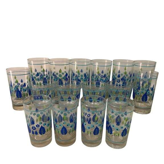 LOT 148 - Mid Century Glasses Tumblers Set Swiss Alpine Mod Colors BoHo Decor Blue Green