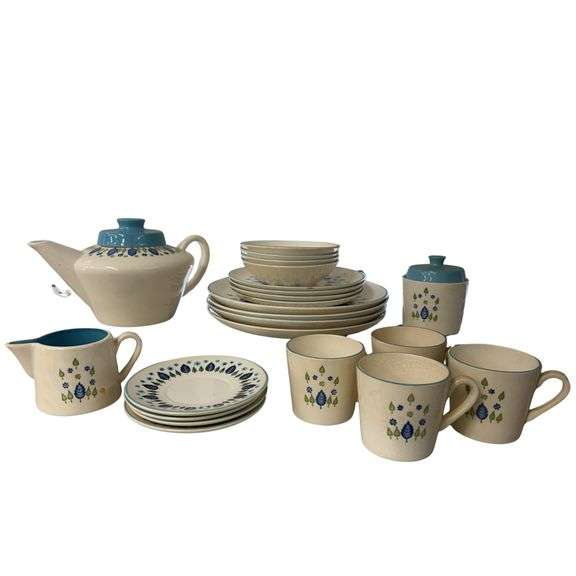 LOT 149 - Mid Century Marcrest Tea Pot Sugar Creamer MCM Swiss Alpine Mod Colors BoHo Decor Blue Green
