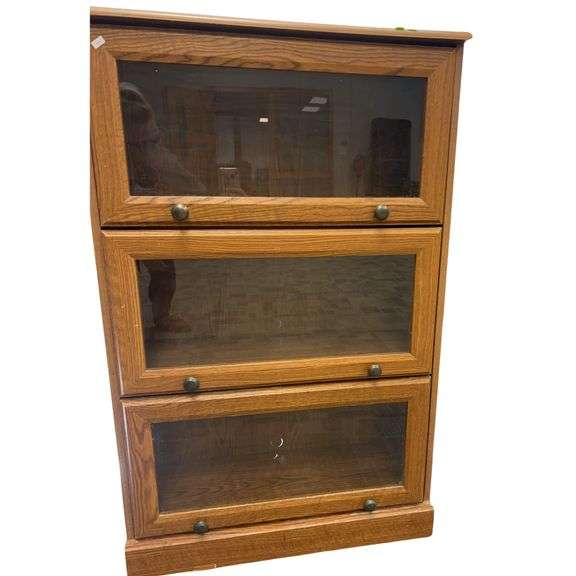 LOT 202 - 44" Tall 3 Shelf Attorney Lawyer Cabinet Drop Down Glass Doors