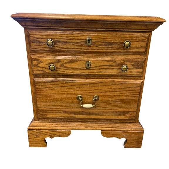 LOT 205 - ~24" Oak End Table Bedside 2 Drawers Jamestown Sterling