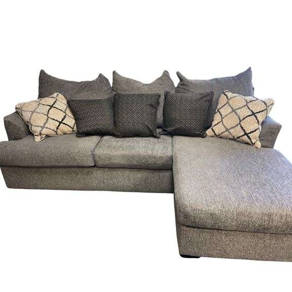 LOT 212 - Broyhill Sofa Chaise Dark Gray Charcoal 2 Piece Pillow Back