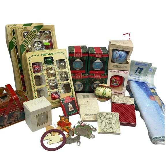 LOT 220 - Pickers Christmas Glass Ball Ornaments Hallmark Boxed New Garden Flags