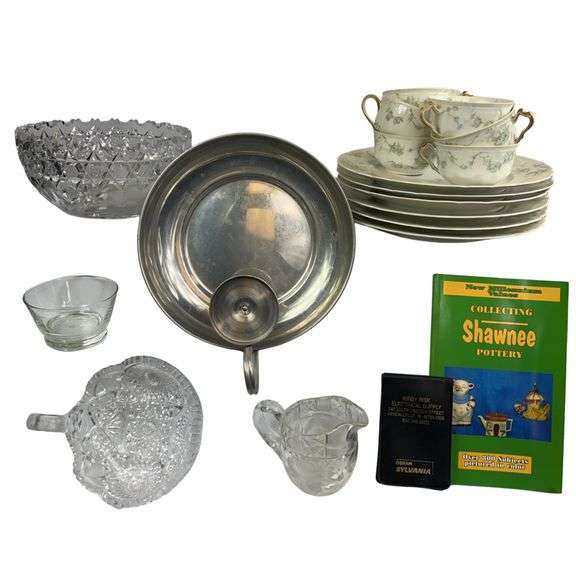 LOT 225 - Pickers Dishes Cut Glass Bowls MCM Chips & Dip Set